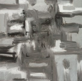 Predator 1 (2011) Silver acrylic and oil on canvas 18×18 inches