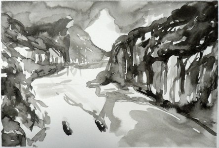 Sumi ink on Arches paper.