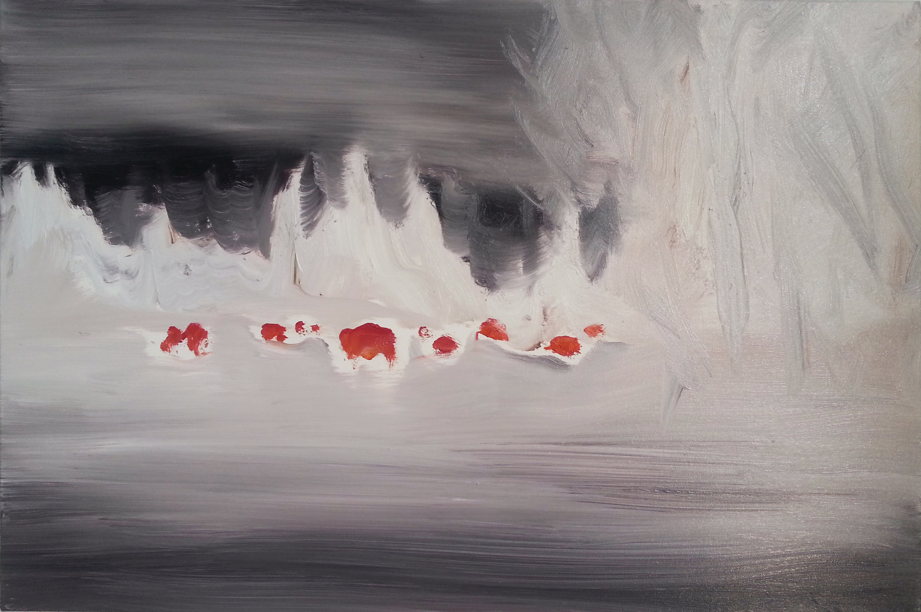 Heat Seekers (snow), 2014, oil/canvas, 20×30 inches